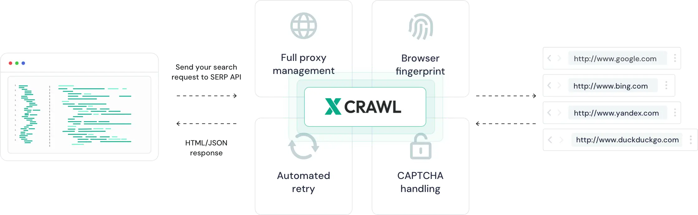 传统爬虫通常只返回原始 HTML。XCrawl 输出干净的 JSON 和 Markdown,并内置代理轮换、SERP API,还能与 MCP、n8n、Zapier 等集成,加速生产流程。
